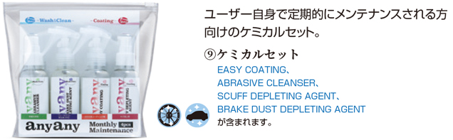 | ⑨ | 簡易メンテナンス溶剤 | anyany Monthly Maintenance ケミカルキット (内容:商品番号②+⑤+⑦+⑧) |